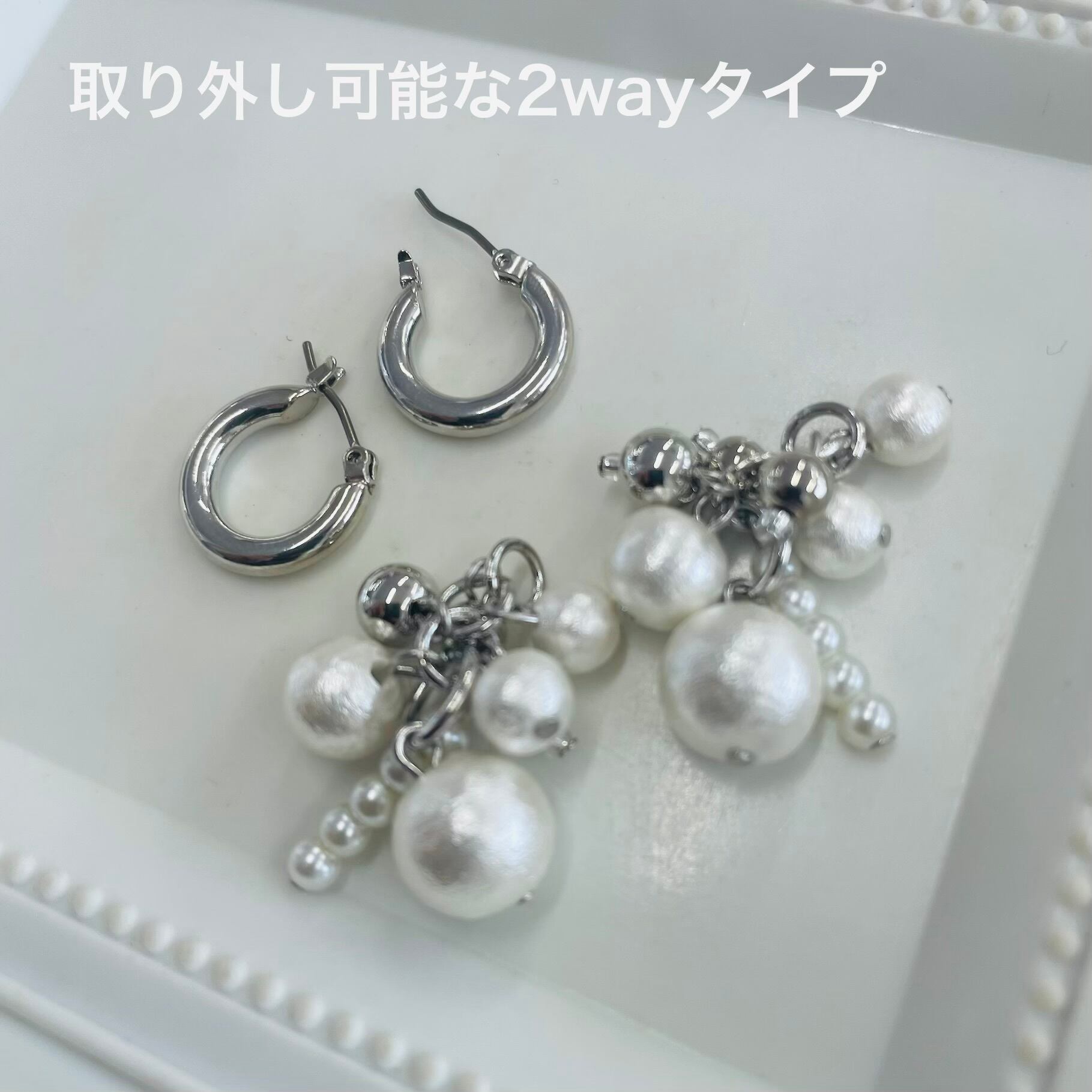 フープピアスとコットンパールの