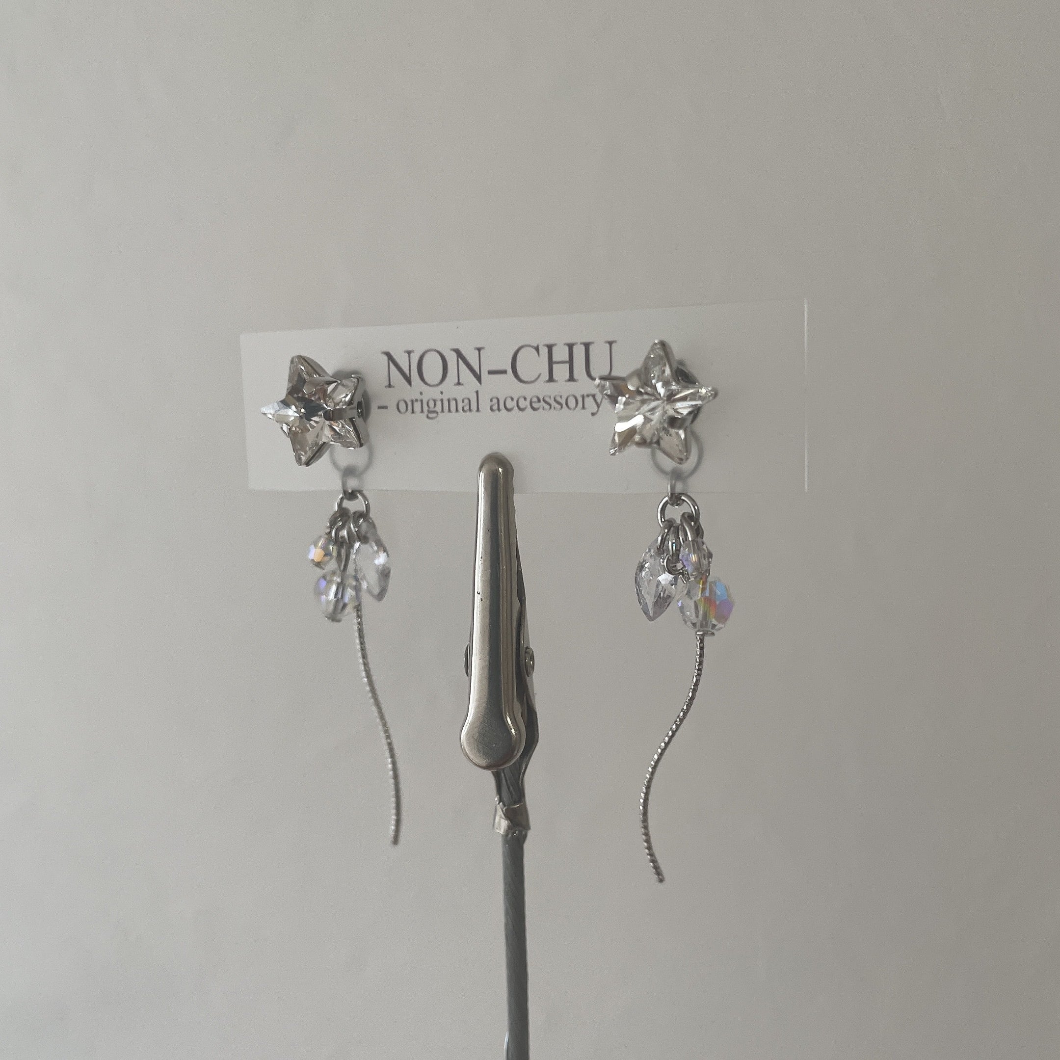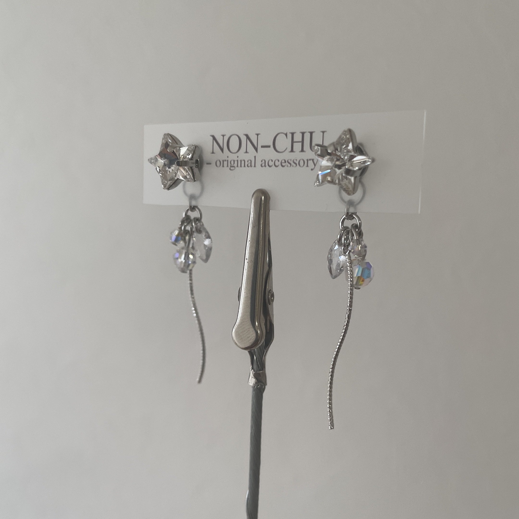 揺れるシルバーの星ピアス・イヤリングです